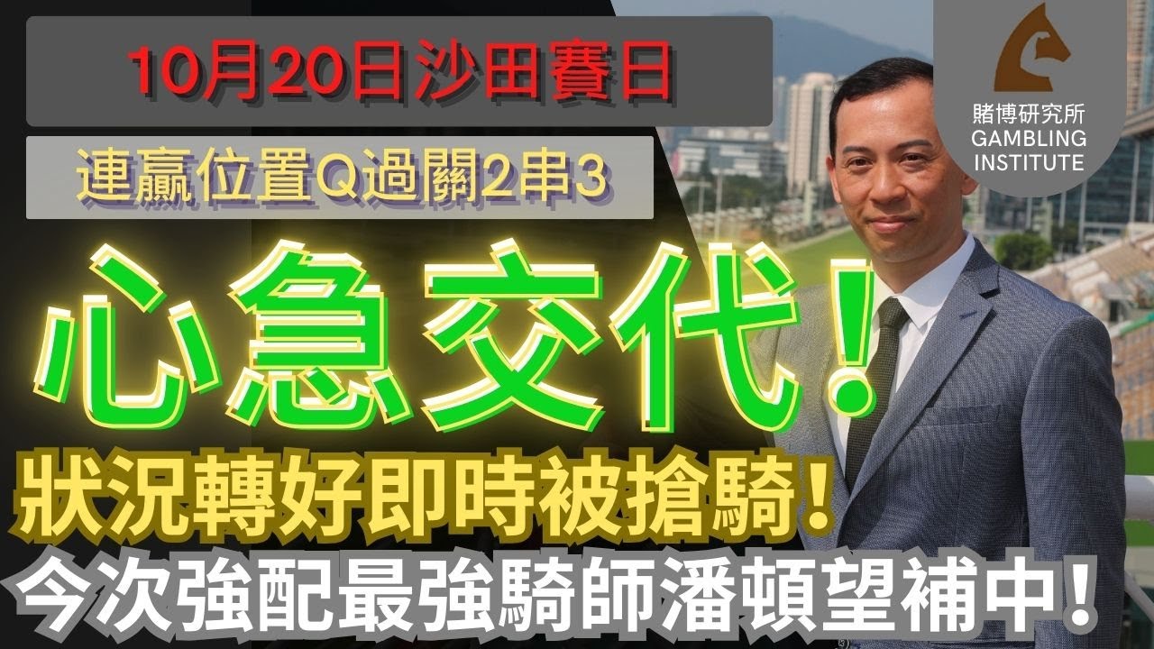 【賽馬貼士】10月20日 連贏位置Q過關2串3|心急交代!|狀況轉好即時被搶騎!今次強配最強騎師潘頓望補中!
