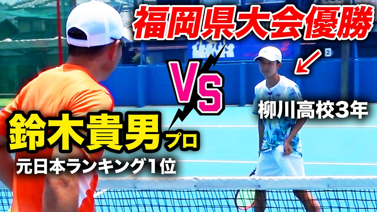 【30歳差対決】福岡県高校No.1プレーヤーvs鈴木貴男(47歳)!炎天下の1セットマッチ決戦!【新實剛生(柳川高校3年)vs鈴木貴男】【柳川高校vsスタテニ団体戦(シングルス1)】