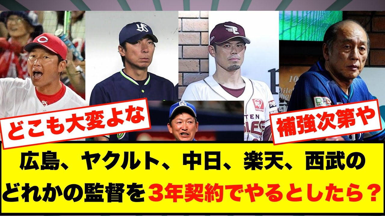 広島、ヤクルト、中日、楽天、西武のどれかの監督を3年契約でやるとしたら?【なんJまとめ プロ野球】