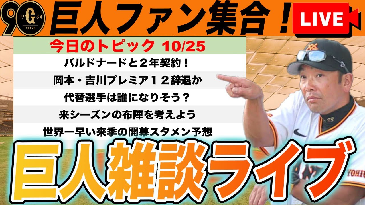 【巨人ファン集合】今後の補強ポイントとか来季の編成とか開幕スタメンとか開幕ローテとか予想しようなど雑談ライブ 読売ジャイアンツ