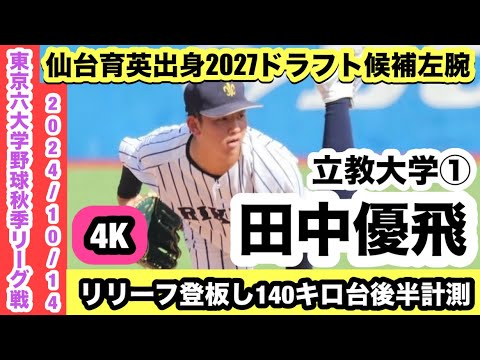 【仙台育英「高橋・湯田・仁田」同期投手】田中優飛(立教大学①)リリーフ登板し140キロ台後半計測!