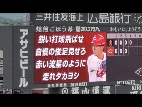 鋭い打球 飛ばせ 自慢の俊足 魅せろ 赤い流星の ように 走れ タカヨシ 【かっ飛ばせー (野間)峻祥!】