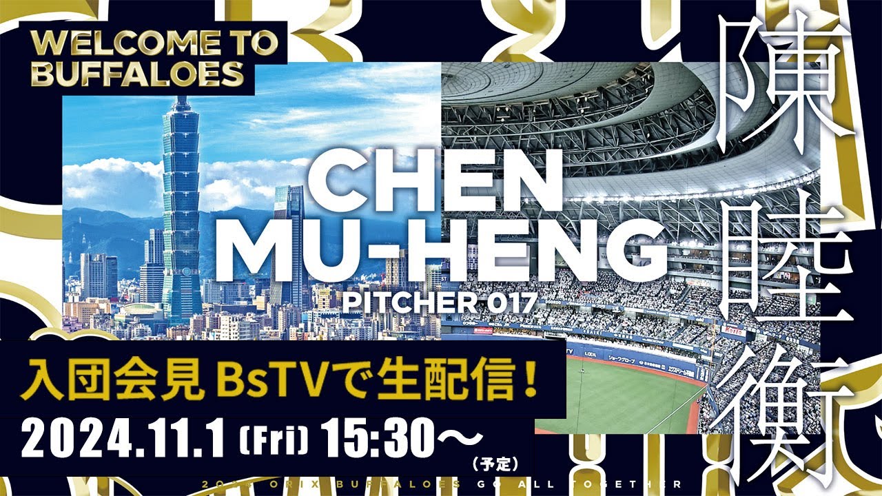 11月1日(金)陳睦衡(チェン・ムーヘン)投手の新入団会見を生配信致します。
