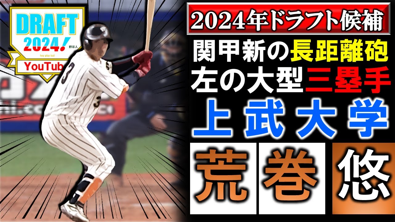 巨人が3位指名!【2024年ドラフト候補紹介】上武大学『荒巻 悠』驚愕なスイングスピードで長打を量産する左の強打者は関甲新学生を代表する三塁手!今春も本塁打&打点の2冠を獲得で注目度急浮上!?