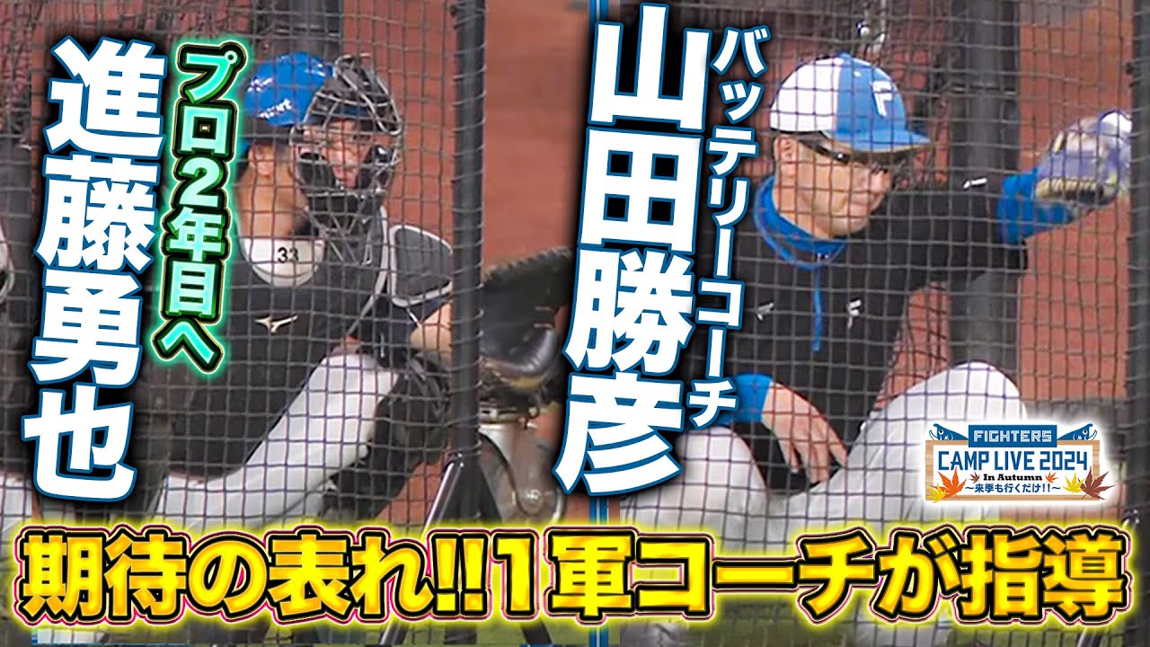 進藤勇也&山田勝彦バッテリーコーチ 1軍でみっちりとキャッチング練習<11/1ファイターズ秋季キャンプ2024>