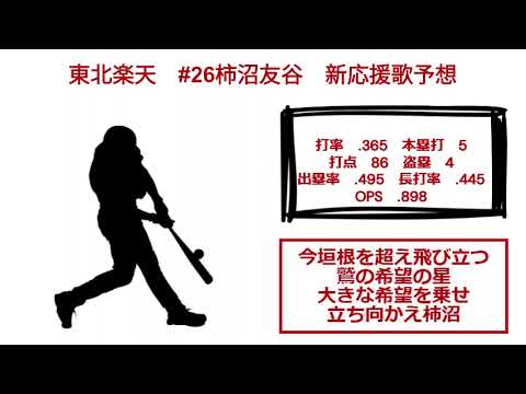 【あくまで予想】【架空応援歌】東北楽天ゴールデンイーグルスE26 柿沼友哉 2025年度新応援歌予想 歌詞 今垣根を超え飛び立つ 鷲の希望の星 大きな希望を乗せ 立ち向かえ柿沼 ※この応援歌はフィクションであり、実際の人物、団体とは一切関係ありません Chiba Lotte Marines千葉ロッテマリーンズ柿沼友哉 NPBHUB.COM | The Fanbase of Nippon Baseball & Nippon Professional Baseball