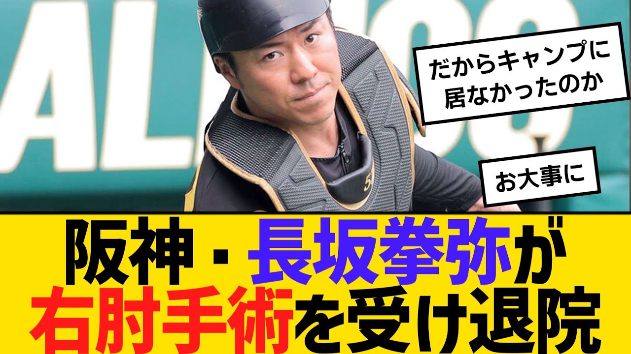 阪神・長坂拳弥が右肘手術を受け退院 【ネットの反応】【反応集】