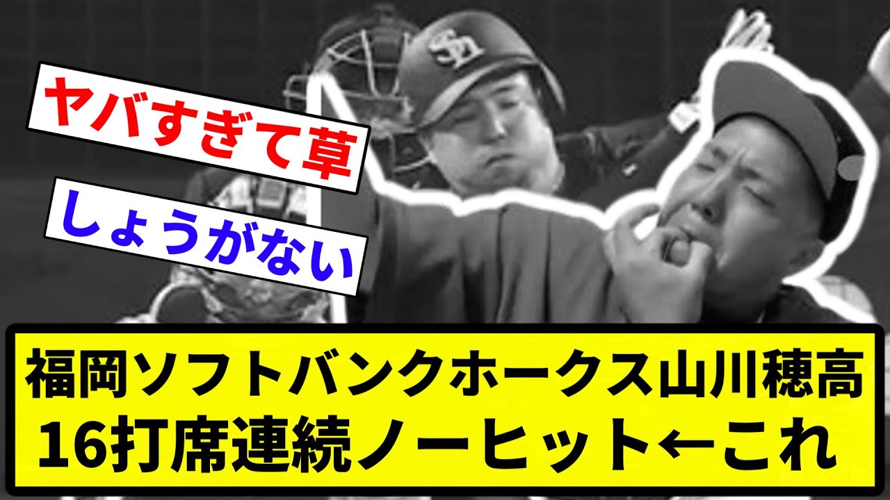 【こり】福岡ソフトバンクホークス山川穂高16打席連続ノーヒット←これw【プロ野球反応集】【1分動画】【プロ野球反応集】