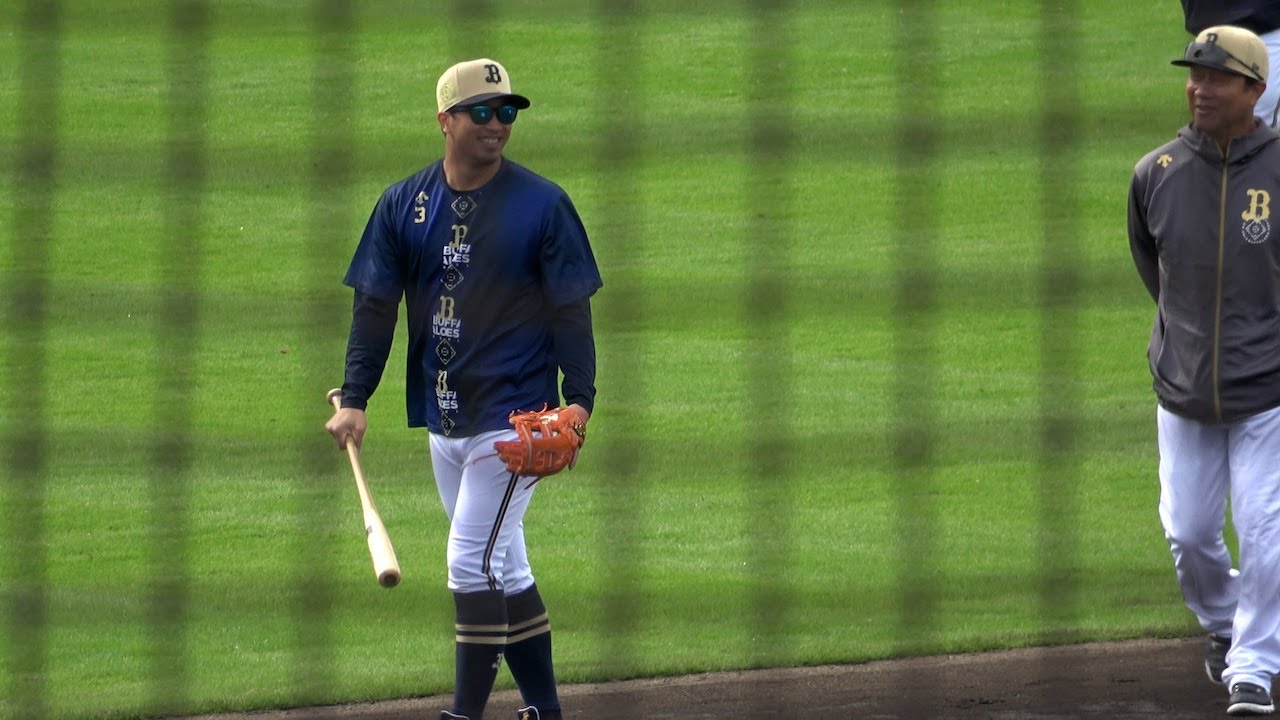 やる気全開でノックバットを持っている安達了一コーチ 秋季練習 #安達了一 #風岡コーチ #オリックスバファローズ ORIX Buffaloesオリックス・バファローズ安達了一 NPBHUB.COM | The Fanbase of Nippon Baseball & Nippon Professional Baseball