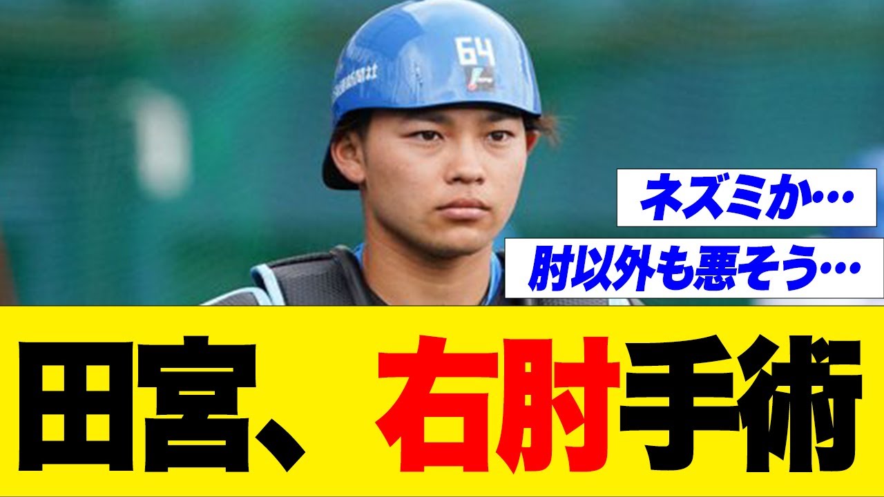【日ハム】田宮裕涼、右肘を手術していた 日本ハム田宮選手が手術をしたことを発表しました。 #プロ野球#佐々木朗希2ch5chHokkaido Nippon-Ham Fightersきつねダンスダルビッシュ有ニュースパ・リーグTVハイライトパリーグTVビッグボスファイターズプロ野球ニュース北海道日本ハムファイターズ報道ステーション大谷翔平新庄剛志日ハム日本ハム杉谷拳士村上村上宗隆根尾田宮裕涼野球野球スレ NPBHUB.COM | The Fanbase of Nippon Baseball & Nippon Professional Baseball