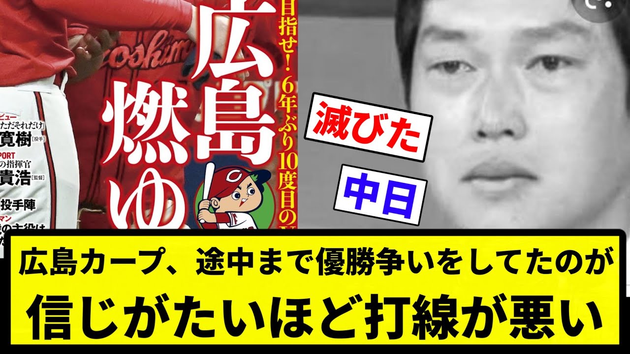 【打線 悪かったな】広島カープ、途中まで優勝争いをしてたのが信じがたいほど打線が悪い【プロ野球反応集】【1分動画】【プロ野球反応集】