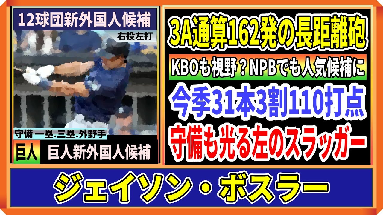【巨人新外国人候補】ジェイソン・ボスラー内野手!今季マイナー31本3割110打点の長距離砲【12球団新外国人候補2025】