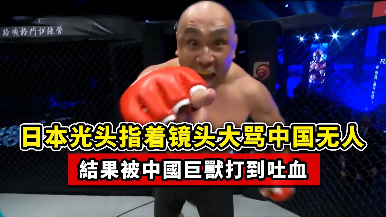 日本光頭指鏡頭大罵中國無人可以擊敗他,結果被中國巨獸打吐血!Japanese said china nobody can beat him Then he was vomited blood【格鬥】