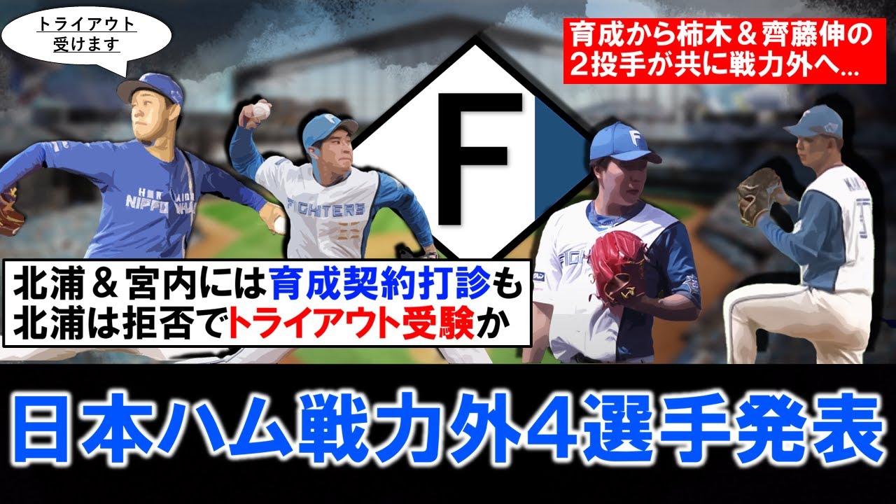 【またまた育成拒否も…?】日本ハム第二次戦力外で『北浦竜次』『宮内春輝』『柿木蓮』『斉藤伸治』ら4選手らが発表 北浦と宮内には育成契約打診も、北浦はトライアウト受験を目指し育成契約拒否の可能性浮上