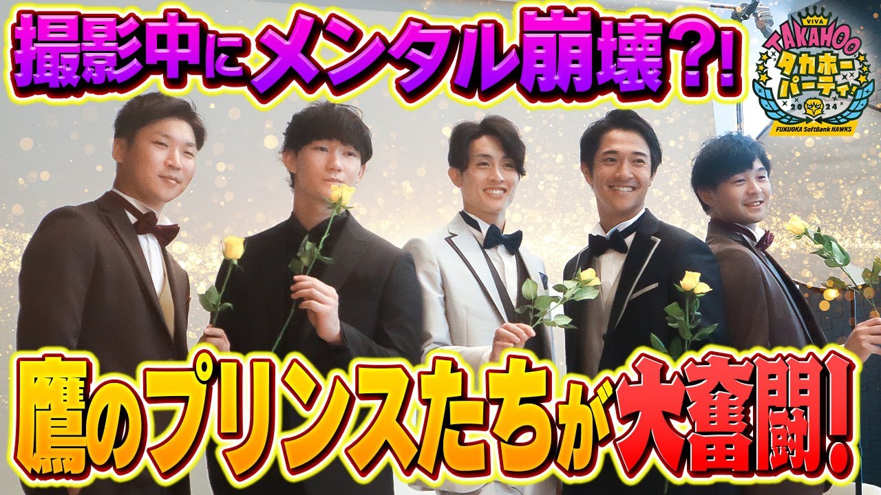 2024年のファンフェスティバルは「VIVAタカホーパーティ!」、鷹のプリンス(選手)一同がファンの皆さまをおもてなしします♪事前に行われたプロモーション撮影に #周東佑京 選手、 #川瀬晃 選手、 #柳町達 選手、 #正木智也 選手、 #長谷川威展 投手が参戦!バラを片手に・・・恥ずかしさと戦いながら(?)撮影に挑んだ5選手の様子をたっぷりお届けします!
