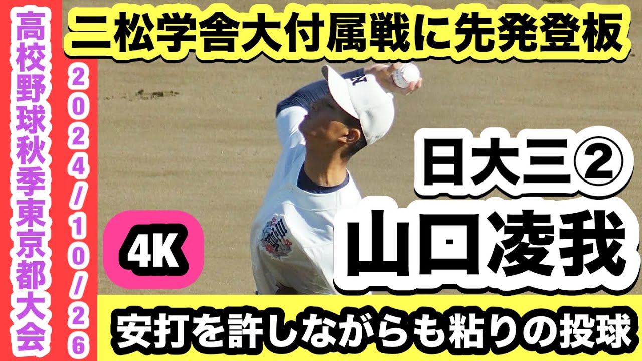 山口凌我(日大三②)二松学舎大付属戦に先発登板!安打を許しながらも粘りの投球!