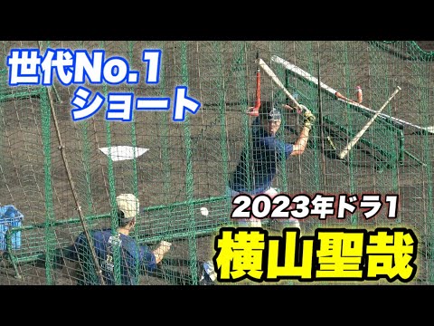 【山田修也との世代ショートを担うオリの昨年ドラフト1位の横山聖哉選手!!流しても強い打球を放つ打撃練習】