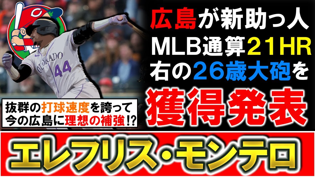 【まさに理想の補強に…!?】広島が新外国人選手として『エレフリス・モンテロ』を獲得発表!MLB通算21HRも抜群の打球速度を誇る26歳の右の大砲!近年の助っ人野手の中ではかなり期待大!?
