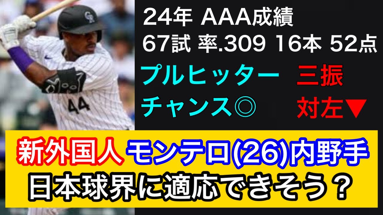 【プロスペクト】新外国人としてモンテロ(26)内野手を獲得!能力や傾向、今後の成長について考察します。