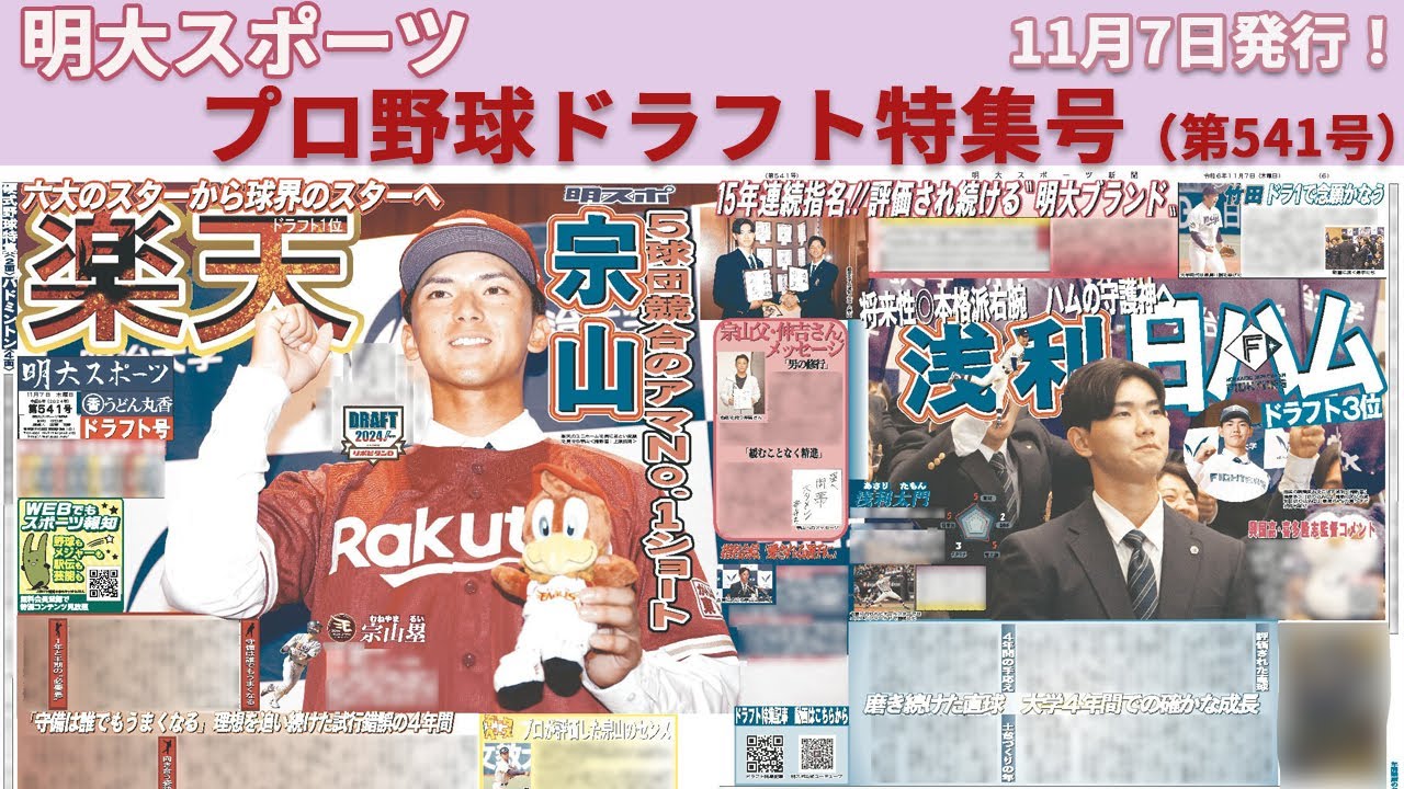 1面では、#東北楽天ゴールデンイーグルス から1位指名を受けた #宗山塁 選手を特集!試行錯誤の大学4年間をコメントと共に振り返ります👀