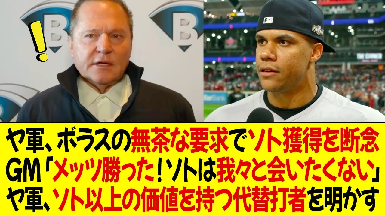 ヤンキースはボラスの無茶な要求のためにソトの獲得を断念!ヤンキースのGM「メッツが勝った!ソトはもう我々と会いたくない」ヤンキースはソト以上の価値を持つ代替打者を明かす!