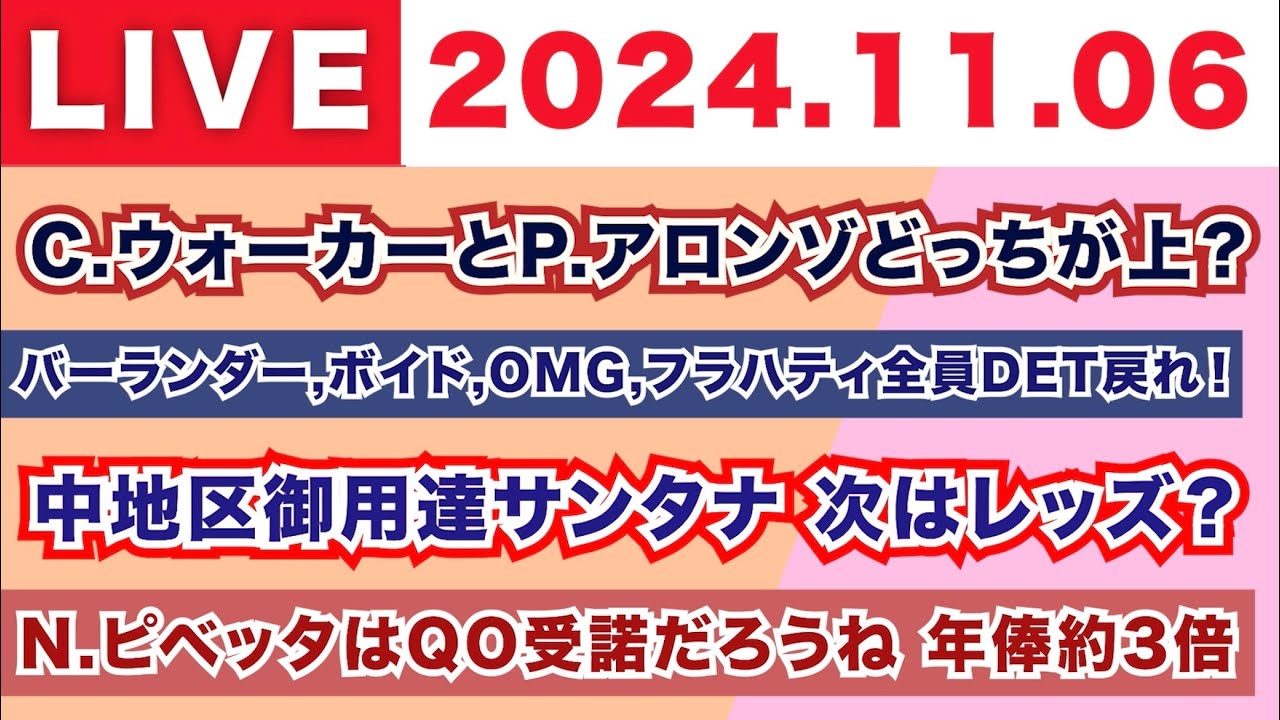【2024.11.06】朝から生MLB!/C.ウォーカーとP.アロンゾどっちが上?/バーランダー,ボイド,OMG,フラハティ全員DETに戻れ!/中地区御用達サンタナ次はレッズ?/N.ピベッタQO受諾?