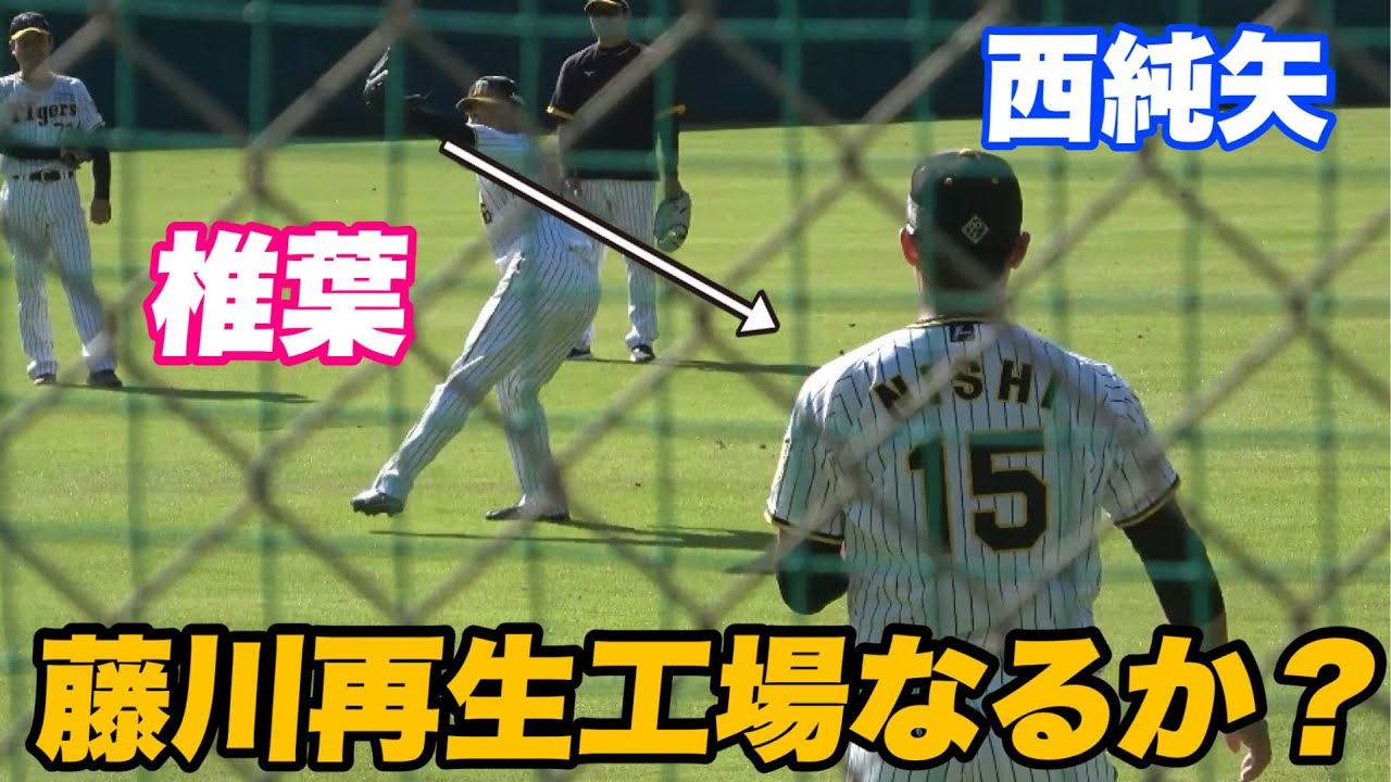 【藤川監督の元で覚醒なるか?西純矢 椎葉投手の間近で見る迫力のキャッチボール!】
