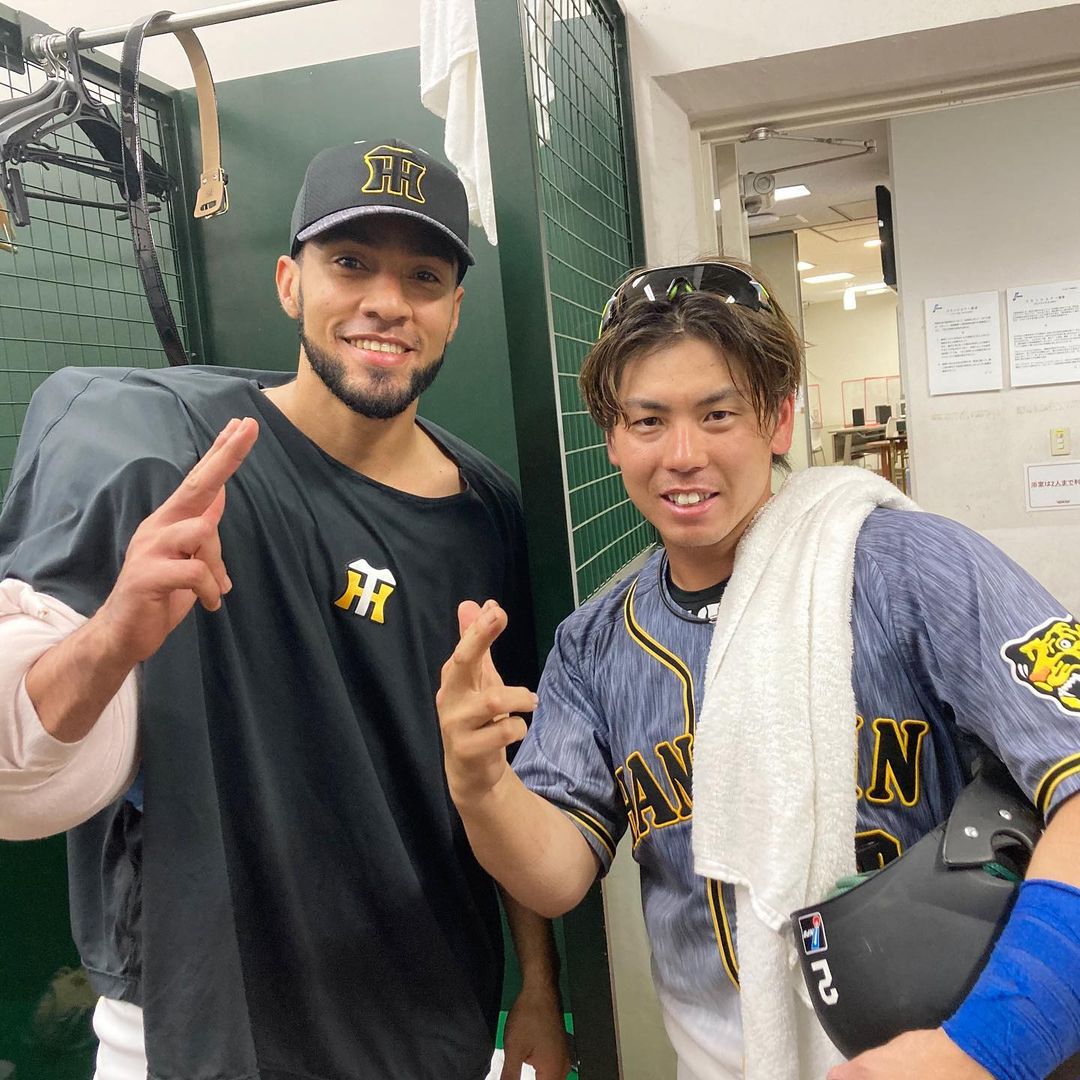 今日の試合で12試合連続セーブの球団新記録を作ったスアレス投手、勝ち越しにつながる貴重な出塁&盗塁を決めた梅野選手!!ナイスバッテリー✨