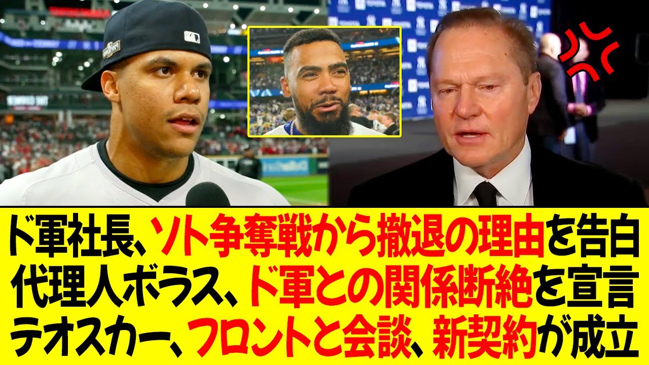 ドジャース社長がソト争奪戦から撤退の理由を明かす!ソトの代理人ボラス、ドジャースとの関係断絶を宣言!テオスカーがフロントと会談、新契約が成立!