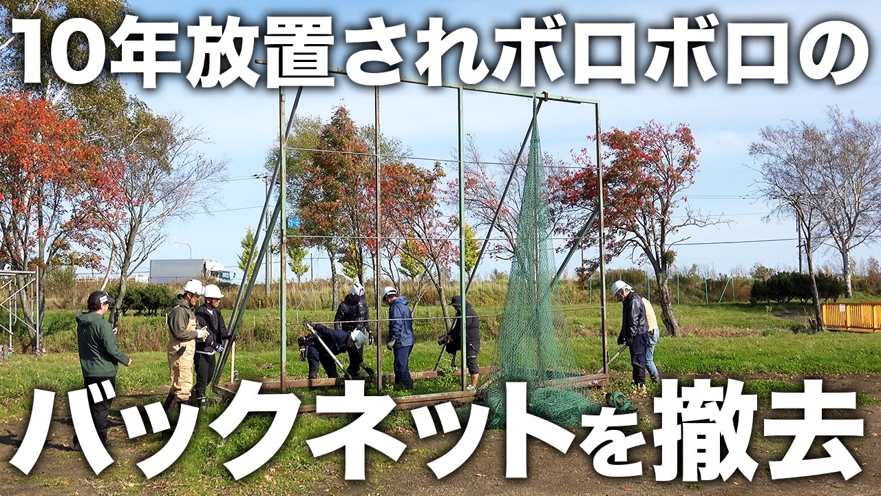 古いボロボロのバックネットを撤去して排水溝を復活させる!!
