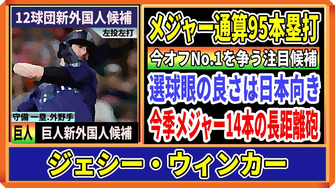 2025年セパ12球団新外国人候補、新外国人の補強候補、今回はセリーグ向きのパワーと選球眼を兼ね備え尚且つ三振率も低い、主にレフトを守る左の長距離砲候補の紹介となります。