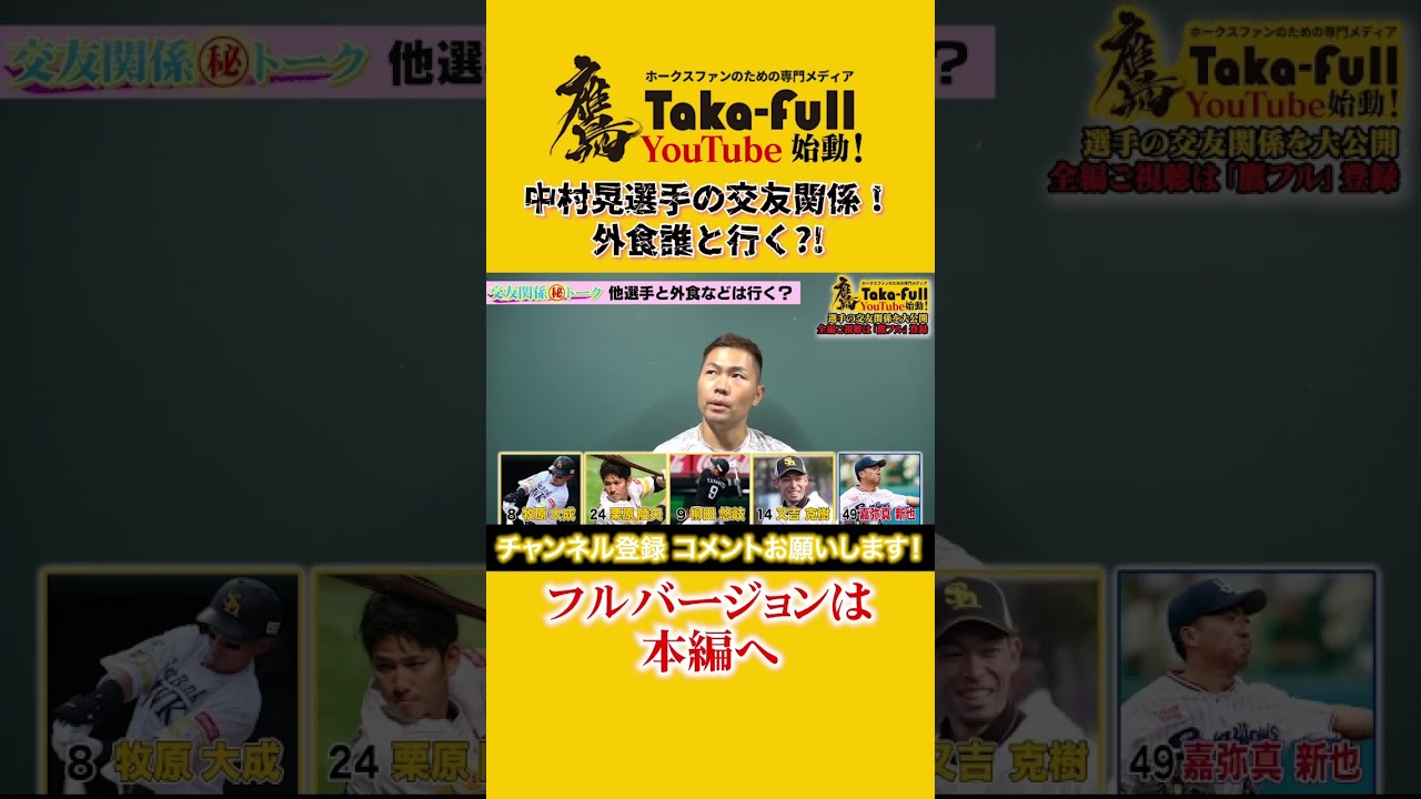 中村晃選手の交友関係トーク、誰と食事へ?【鷹フルショート】