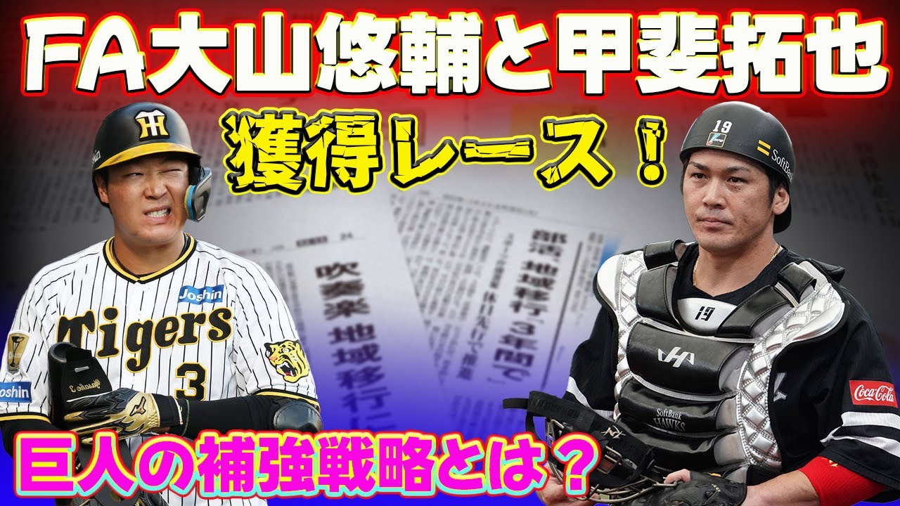 #巨人 #大山悠輔 #甲斐拓也 #FA #プロ野球 #大型契約 #阪神 #ソフトバンク #獲得レース #打撃力 #守備力 #チーム強化 #阿部慎之助 #野球ニュース #FA権 .