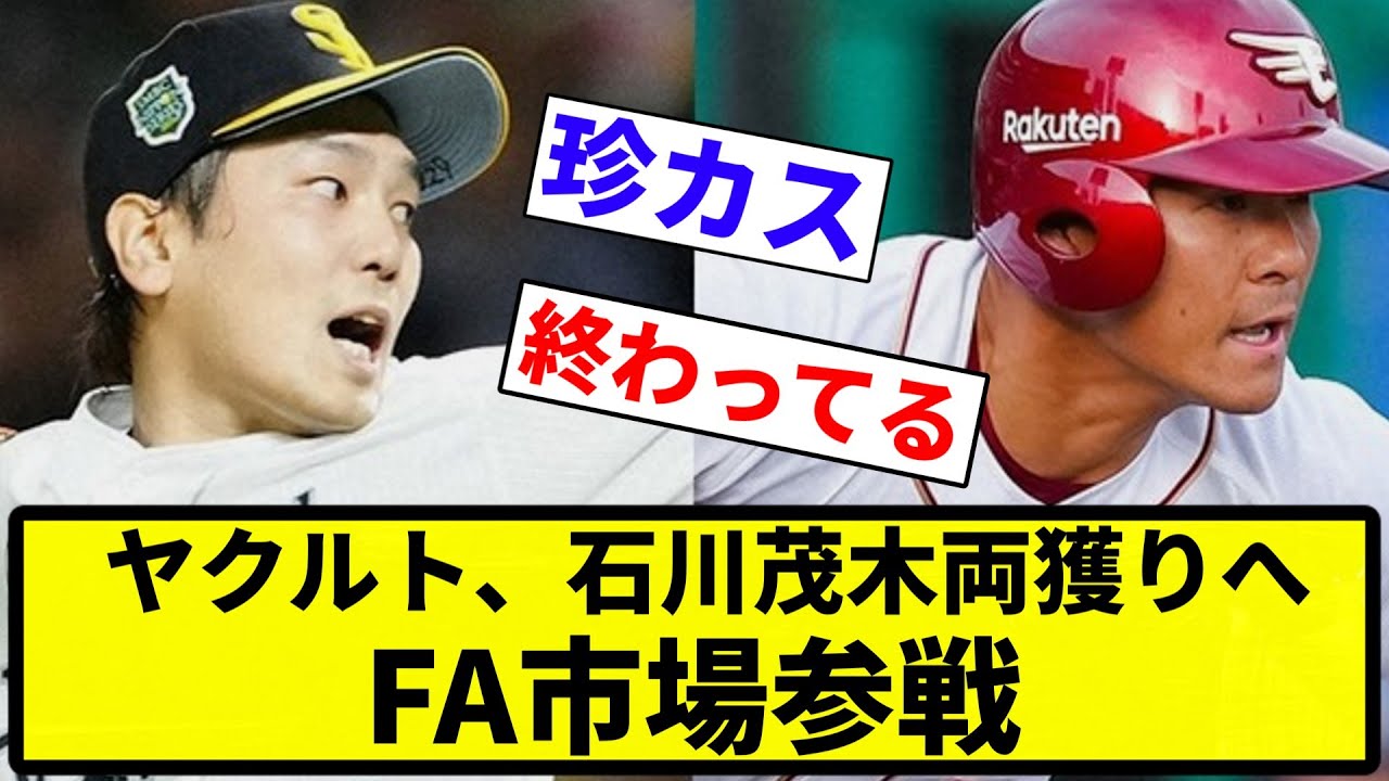 【両獲りや!】ヤクルト、石川茂木両獲りへFA市場参戦【プロ野球反応集】【1分動画】【プロ野球反応集】
