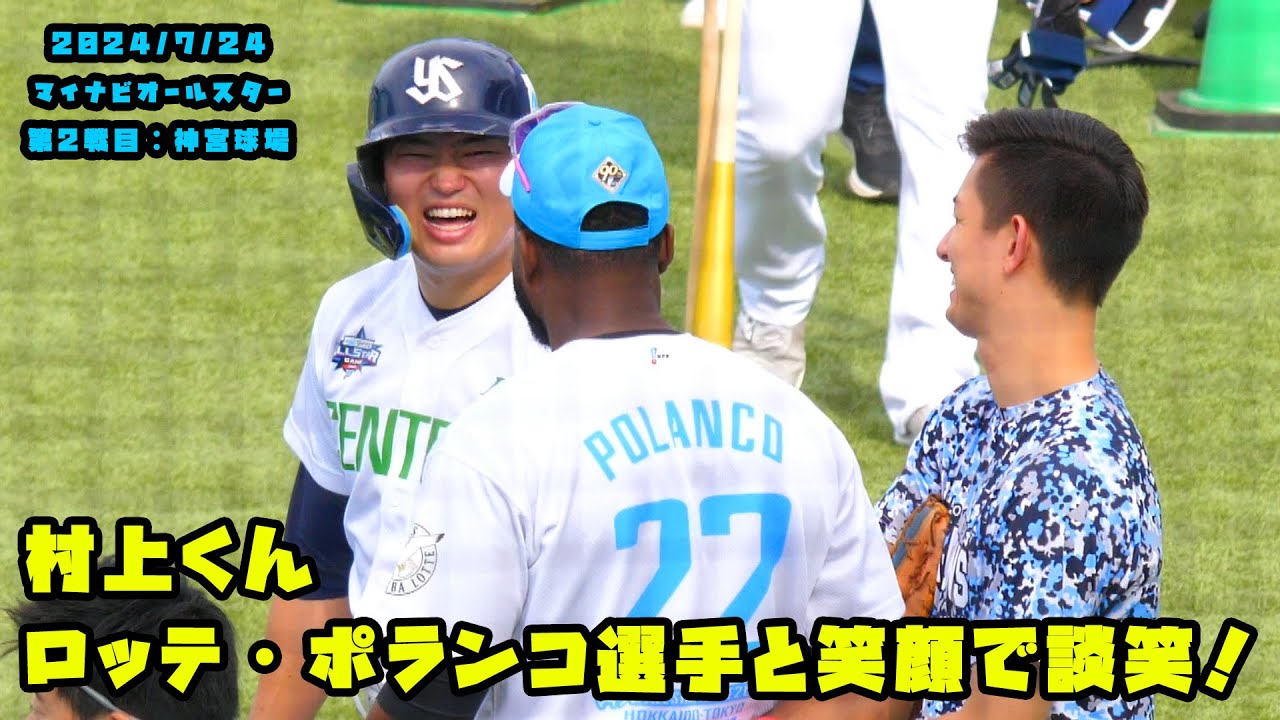 村上くん ロッテ・ポランコ選手と笑顔で談笑!! 2024/7/24 マイナビオールスターゲーム2024 第2戦:明治神宮球場