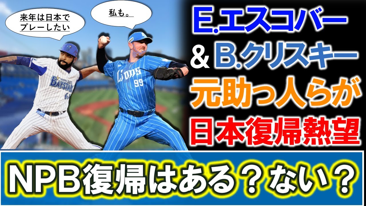 【リリーフ補強の候補に…?】元DeNAなど所属の『E.エスコバー』&『B.クリスキー』ら元NPB助っ人らが来季の日本復帰を熱望!!共に今季AAAでプレーしていたが今季のNPB復帰はある?ない?