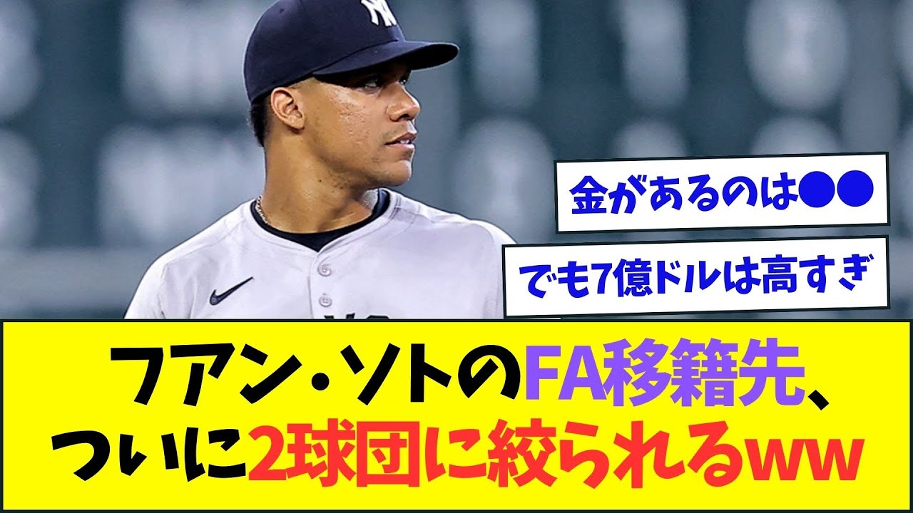 フアン・ソトのFA移籍先、ついに2球団に絞られるww【なんJなんG反応】【2ch5ch】 ご視聴ありがとうございます。 これからも面白い野球ニュースを配信するので、チャンネル登録&高評価よろしくお願いします!⚾⚾⚾⚾ ——————- #なんj #プロ野球 #5ch #プロ野球2ch5chbaseballYOKOHAMA DeNA BAYSTARSソト 野球なんJプロ野球おもしろ速報まとめ横浜DeNAベイスターズ速報 NPBHUB.COM | The Fanbase of Nippon Baseball & Nippon Professional Baseball