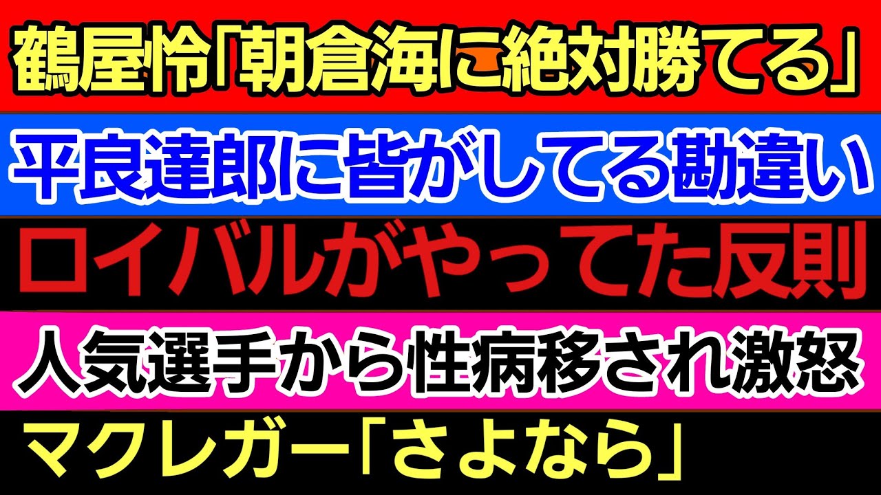 〇鶴屋怜「朝倉海に勝てる」〇平良達郎 皆がしてる勘違い「実は…」〇ブランドン・ロイバルがやってた反則〇人気選手から性病移され妻 激怒〇マクレガー「さよなら」〇イゴール・タナベ 「オファーは向こうから」
