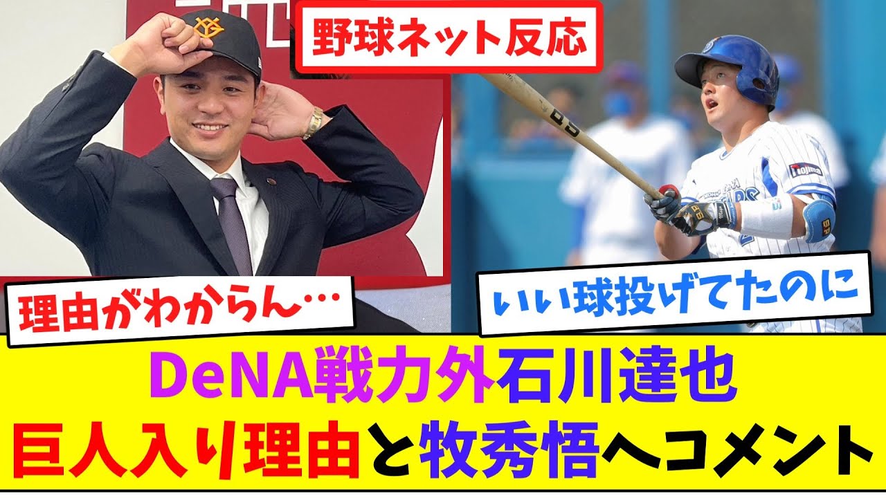 DeNA戦力外石川達也、巨人入り理由と牧秀悟へコメント【ネット反応集】 このチャンネルではプロ野球界で起こった出来事に対するネット上での反応をまとめています。 当チャンネルと共にプロ野球を楽しんでいただけたら嬉しいです。 まとめてほしい出来事のリクエストやご感想はコメント欄へどうぞ! ※元々DeNA専門チャンネルとしていましたが幅広く取り扱っていくため一度過去の動画は非公開にいたしました。 # # # # #プロ野球 #なんj反応 #2ch #5ch #プロ野球YOKOHAMA DeNA BAYSTARSなんJ野球横浜DeNAベイスターズ石川達也 NPBHUB.COM | The Fanbase of Nippon Baseball & Nippon Professional Baseball
