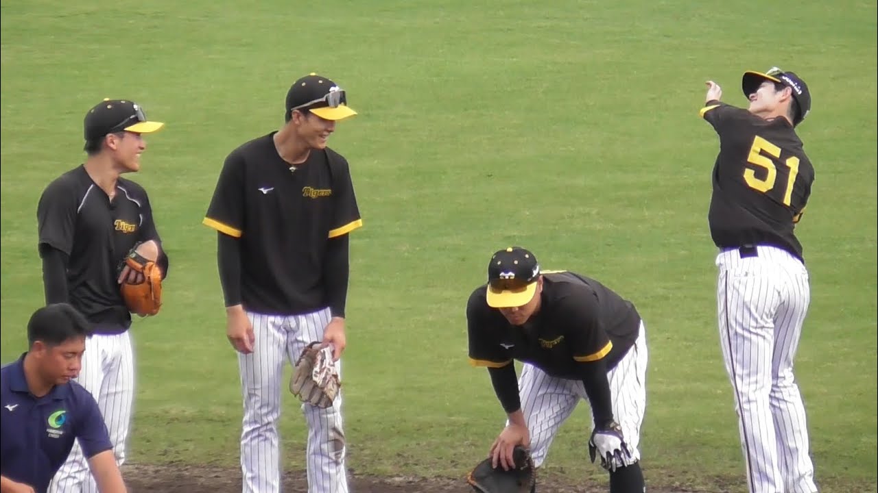 【爆イジリ】小幡の落球ダイブを本人の前で真似する中野と髙寺【阪神秋季キャンプ】