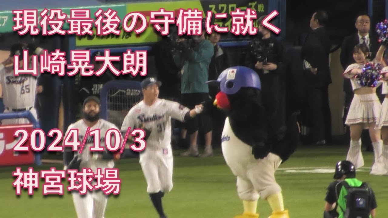 つば九郎、現役最後の守備に就く山崎晃大朗を送り出す 20241003