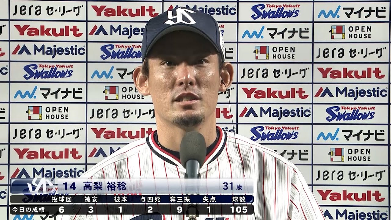 8月16日 東京ヤクルトスワローズvs阪神戦後の高梨裕稔投手のヒーローインタビューです。