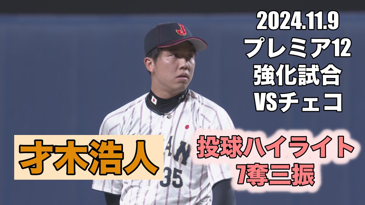 才木浩人 投球ハイライト 7奪三振 プレミア12 強化試合 2024.11.9 VSチェコ