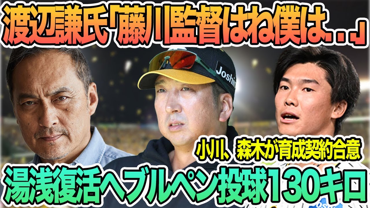 【渡辺謙氏「藤川監督はね僕は・・・」】湯浅がブルペン投球で130キロ 小川、森木と育成契約合意 阪神タイガース