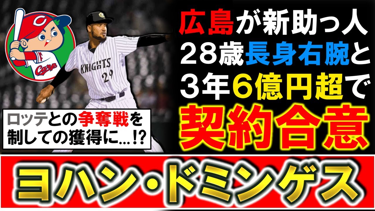 【今年はスカウティングが一変!?】広島が新助っ人として『ヨハン・ドミンゲス』と3年総額6億円超で契約合意と報道!千葉ロッテとの争奪戦を制し先発リリーフどちらもできる28歳剛腕がカープに!
