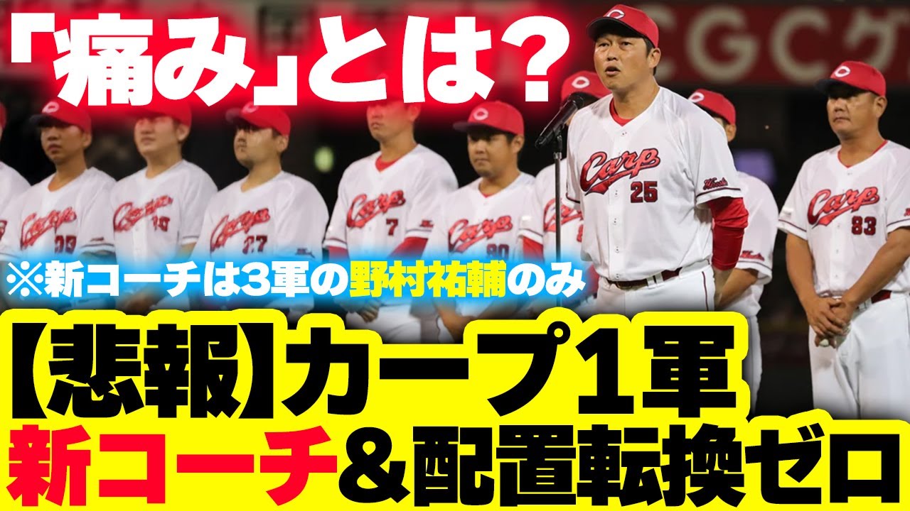 カープ2025年コーチ陣発表!1軍は全員留任。野村祐輔のみ新コーチ 広島カープ2025年コーチ陣発表!1軍は全員留任。野村祐輔のみ新コーチ ※カープファンからは特に新打撃コーチを求める声が大きかったが、朝山東洋打撃コーチ、小窪哲也打撃コーチは留任し、新打撃コーチの招集はなし。 ■VOICEVOX ずんだもん 四国めたん 冥鳴ひまり 猫使ビィ 春日部つむぎ ちび式じい 青山龍星 玄野武宏 No7 #carp #カープ #コーチ #首脳陣 #打撃コーチ Hiroshima Toyo Carpカープ広島広島東洋カープ野村祐輔 NPBHUB.COM | The Fanbase of Nippon Baseball & Nippon Professional Baseball