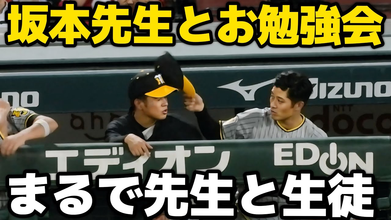【先生からお叱り?!】坂本から帽子で叩かれる髙橋遥人。降板後、坂本と勉強兼ねたような会話をする2024.8.23