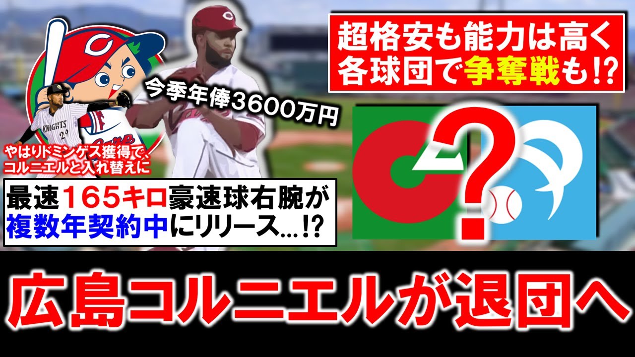 【今季年俸は約3600万円!?】広島助っ人『R.コルニエル』が退団へ!最速165キロを誇る剛腕で現在複数年契約中も『ドミンゲス』獲得でまさかの自由契約!それでも超格安年俸で能力も高く各球団争奪戦も!?