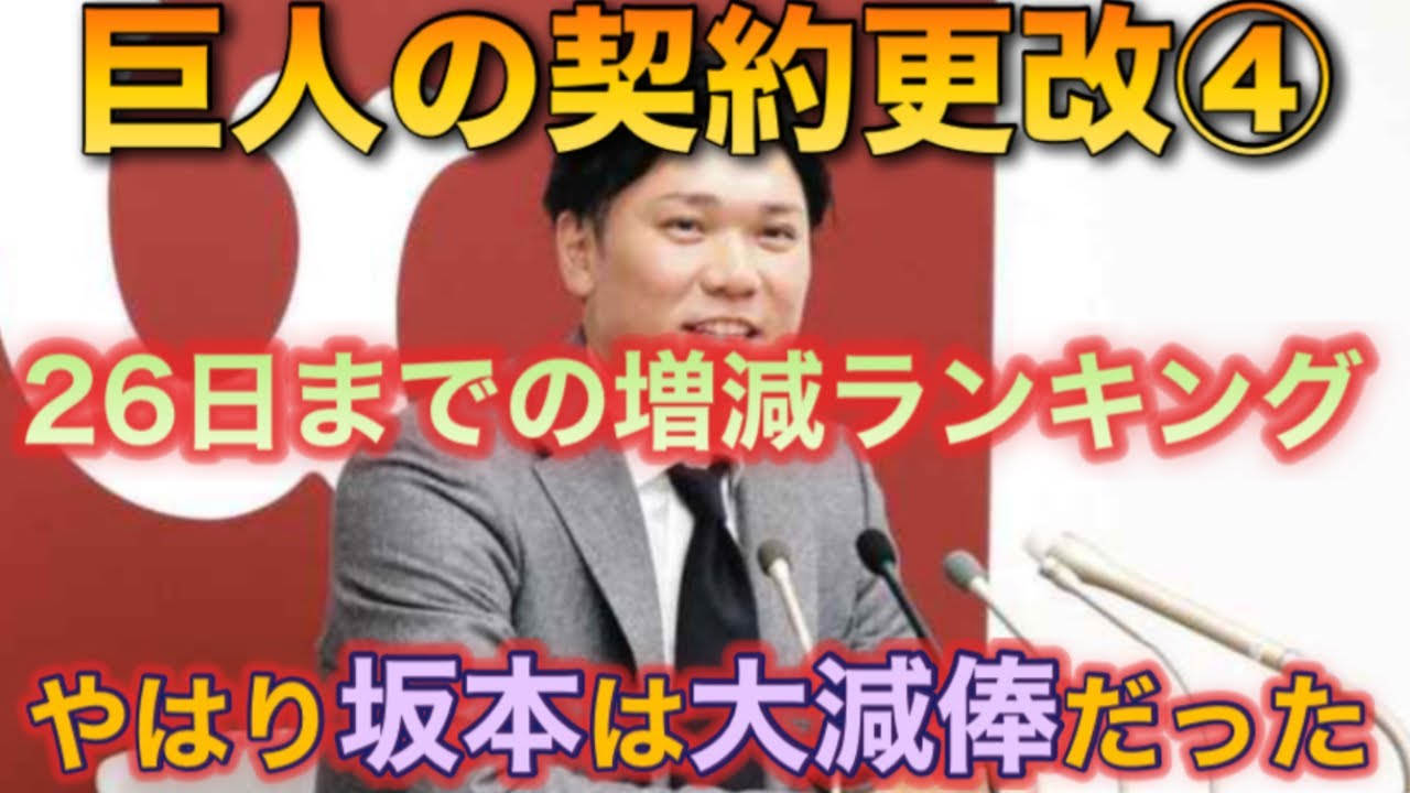 【契約更改】ジャイアンツ年俸増減ランキング④ 2024年読売ジャイアンツ年俸増減ランキング④ 坂本勇人が単年契約で一気に1億円ダウン 戸郷翔征が坂本勇人を越す推移で3億円に! #読売ジャイアンツ #巨人年俸ランキング #坂本勇人 Satozaki ChannelYomiuri Giantsがるべすちゃんねるプロ野球グータッチ報知プロ野球チャンネル巨人のウワサ江川卓のたかされ神奈川人チャンネル読売ジャイアンツ野球人高木豊 NPBHUB.COM | The Fanbase of Nippon Baseball & Nippon Professional Baseball