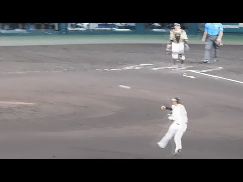 【大ピンチで攻めの守備】木浪聖也 1死1.2塁で攻めのチャージ ランニングスローで1つアウトを取る 自分の点は自分で守る